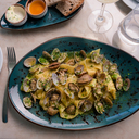 A comida fica a cargo do restaurante Volta do Mar, que, com um menu moderno e requintado, prioriza os produtos que têm origem na costa e no montado alentejano, dando origem a pratos como o picapau de porco alentejano com pimentão fumado (7€) e o javali com amêijoas e coentros (19,50€).