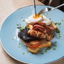As manhãs no The Green House começam com uma versão do pequeno-almoço premiado do Santiago de Alfama, distinguido pela Condé Nast. Pode provar os Mediterranean Eggs — espinafres salteados, cogumelos portobello, ovos escalfados sobre pão de fermentação natural, finalizados com molho de iogurte e manteiga de chili quente —, optar pelo clássico Green House English ou simplesmente saborear fruta fresca e pastelaria acabada de sair do forno.