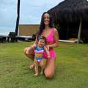 Apesar de alguns dias de chuva intensa, a família aproveitou os momentos de sol para desfrutar da praia privada e das instalações do resort, que combina arquitetura contemporânea assinada por Marcio Kogan com uma forte aposta na sustentabilidade e integração natural.