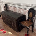 Num primeiro momento, somos levados para uma pequena (grande) sala de estar, onde os hóspedes aguardam pelo check-in. Há sumos, águas, fruta e frutos secos — mas a atenção desvia-se facilmente para os azulejos deslumbrantes que preenchem o espaço. “Temos azulejos da Índia, os maiores são espanhóis do século XIX, os sofás foram desenhados por Pierre Yovanovitch, o coral é verdadeiro — e apesar de hoje já não ser permitido, o Christian já o tinha há muito tempo, por isso ficou”, conta Vera.A sensação é de que estamos fora do Alentejo. Uma mistura de culturas e influências artísticas transforma o ambiente numa pequena vila dentro de outra vila. Mas é quando entramos no quarto que a verdadeira aventura começa. E fica já o conselho: experimente a banheira de pedra — nem que seja só para se sentir pequenino no meio de tanta imponência.
