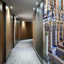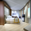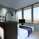 O hotel dispõe ainda de 244 quartos (um deles uma grande residência presencial situada no último andar de habitações) com grandes janelas, e todos eles possuem um conjunto de mobiliário feito à medida com casas de banho equipadas com banheira e duche (e com todos os produtos necessários para uma boa noite de relaxamento).