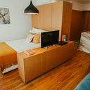 Este estúdio, disponível na plataforma Airbnb, fica no centro da vila do Gerês e recebe até dois hóspedes. Tem um quarto, uma cama, uma casa de banho, wi-fi, televisão, cozinha, ar condicionado e uma piscina partilhada. Custa 75€ por noite, sendo que um total de cinco noites fica por 440€ já com taxas.