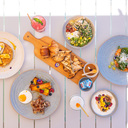 Caso queira uma refeição mais nutritiva, pode optar pelo Morning Essentials, que inclui pães e viennoisserie, manteiga e compota, bircher muesli de citrinos do Algarve com iogurte grego, chia, frutos vermelhos e mel, panquecas, sumo do dia e café ou chá.