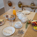 Ao pequeno-almoço, servido com vista para a serra, a mesa enche-se de produtos regionais: pães e compotas caseiras, bolos feitos na hora e, claro, o famoso mel da Serra do Caramulo. Há também um bar típico com esplanada, onde se podem provar petiscos locais, e uma loja de produtos regionais com mel, pólen e própolis produzidos pela própria marca Beecaramulo.