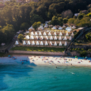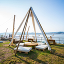 Situado em Moaña, na província de Pontevedra, o Kampaoh fica mesmo em frente à Praia de Tirán, com uma vista deslumbrante sobre a Ría de Vigo. O acesso à praia é direto, através de uma escadaria de madeira, e o ambiente convida a desligar do mundo — mas com Wi-Fi, claro.