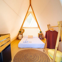 Ao contrário do camping tradicional, aqui não precisa de levar nada. As tendas já estão montadas e equipadas com camas, lençóis, toalhas, mini-frigorífico, tomadas elétricas e até cadeados. Há diferentes modelos, como o Bell, Imperador, Bungalow ou Buka, que podem alojar desde casais a famílias e grupos até seis pessoas.