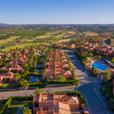 Todos os alojamentos têm dois ou mais quartos, cozinhas equipadas e estão rodeados de jardins. Algumas moradias incluem piscina privada. Há também vistas para os campos de golfe ou para a paisagem rural.