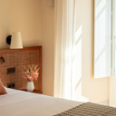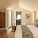 Os quartos dividem-se entre o edifício histórico e a ala contemporânea. Nos Quartos Palácio, sobressaem os tetos altos, a madeira restaurada e a atmosfera aristocrática; nos Quartos Medina, a serenidade dos pátios e a simplicidade dos materiais naturais. As tipologias vão do Palácio Standard ao Ático Junior Suite, passando por opções com varanda ou terraço privado.