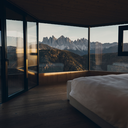 São 62 suítes, incluindo Tower Suites e Penthouses, todas projetadas para que o exterior seja protagonista. As janelas panorâmicas transformam os quartos em miradouros para as Dolomitas, com luz natural a inundar os espaços e um design que privilegia a sobriedade e conforto.