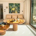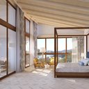 Cada espaço do hotel foi desenhado para capturar a serenidade do mar e do pinhal mediterrânico, com paleta de tons suaves, pedra trabalhada à mão e peças de arte selecionadas de artistas locais e internacionais. Entre as opções de alojamento encontram‑se suítes com piscinas privadas e rooftop suites, perfeitas para quem procura uma experiência exclusiva.