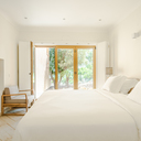 Durante os meses de julho e agosto, a casa só pode ser reservada na totalidade, com entrada aos sábados. Fora da época alta, é possível alugar uma única suíte ou a casa completa, com maior flexibilidade nas datas e duração da estadia.