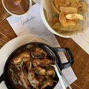 As pernas e peitos de codorniz fritos em azeite e ervas aromáticas (16,50€) estavam deliciosas, assim como a presa de porco preto com molho de berbigão e migas de coentros (28,50€), uma criação que tem tanto de imaginativa como de acertada.