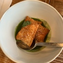 Esta junção é ainda melhor do que soa (e já queremos um frasco inteiro desta maionese no nosso frigorífico, bem como uma dúzia dos croquetes no nosso congelador). Quatro unidades custam 14,90€. Ainda nas entradas, comemos uma “sobremesa”: queijo de cabra gratinado com pickles de pêra, mel, nozes e gelado de tomilho (16,50€).
