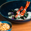 Referimo-nos ao carabineiro, que, cozinhado a baixa temperatura, surge acompanhado por um puré de feijão branco alentejano, algas, espirulina e um guisado de marisco composto por gambas, búzios e lingueirão (45€).