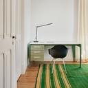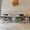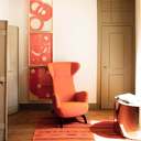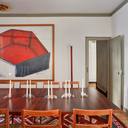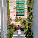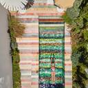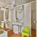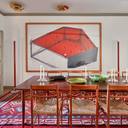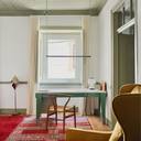 A decoração junta clássicos do design com peças portuguesas vintage, tecidos texturados, iluminação de autor e obras da mãe de Filipa — criando uma atmosfera entre o excêntrico e o sofisticado. O jardim interior, com árvores de citrinos e a tal piscina com riscas, é o coração da casa. É lá que acontecem os pequenos-almoços, os jantares inspirados nas viagens dos donos e as conversas de fim de tarde. Há um honesty bar, pratos pequenos com ingredientes biológicos, e uma mesa desenhada por Daciano da Costa, um ícone do design português.