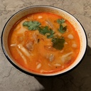 Começámos pela sopa tom yum, com camarões tigre pretos, cogumelos, coentros, compota caseira de chili e sumo de lima (10€ a pequena ou 19€ a grande). Foi diferente de tudo o que já provámos até hoje, e uma experiência positiva, assim como o nag kai tod, ou pele de frango frita crocante com molho sriracha (5€), e os amendoins tom yum, com um tempero único.