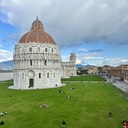 Nos relvados amplos que pintam esta praça, que pode ser observada do algo da muralha medieval que a circunda, encontra-se também a Catedral de Pisa. Esta destaca-se pela sua arquitetura própria, que pisca o olho ao estilo românico-pisano. A sua construção começou em 1064 a cargo do arquiteto Buscheto e, na sua decoração, participou, entre 1173 e 1180, o grande escultor Bonanno Pisano.O Batistério de São João também não é de descurar, uma vez que se assume, de igual forma, como uma fusão de estilos arquitetónicos. O estilo românico do piso térreo deu lugar ao gótico da galeria superior e da cúpula – aliás, foi a construção desta última parte que fez com que a acústica se tornasse perfeita, fazendo com que haja sempre alguém usufrua do eco duradouro para cantar de meia em meia hora.