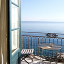 O alojamento tem apenas seis apartamentos. São simples, com chão de azulejos antigos, camas de ferro forjado e pinturas celestiais. E todos eles com uma varanda, que se esconde por trás de enormes janelas com portadas, com vista para a baía, que é um dos locais que atrai os escassos habitantes desta zona tão tranquila.