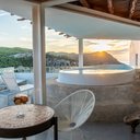 Além disso, esta vista não é só privilegiada na piscina, visto que todos os quartos também possuem esta extraordinária característica. Com 77 acomodações, as tipologias estão divididas em quartos e suites, mas todas elas têm algo em comum: a descontração e o relaxamento como protagonistas da decoração. Alguns com piscinas de hidromassagem internas e exteriores, e outras com jardins privados, o importante aqui é priorizar as férias que há muito desejava.