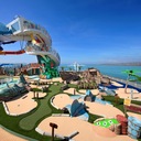 Como se isto não bastasse, há dezenas de bares, onde poderá ficar de copo na mão, enquanto os miúdos aproveitam maravilhas como as sete piscinas do navio, os seis escorregas e o maior parque aquático marítimo do mundo, chamado Category 6. Mas calma, porque as atrações não se ficam por aqui: há ainda minigolfe, simulador de surf, casino, pista de gelo e vários espetáculos.